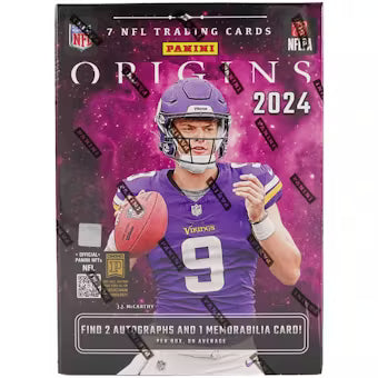 The 2024 Panini Origins Football Hobby Box showcases stunning artwork of the NFL's top stars, rookies, and legends across base and insert sets like Origin Story and Blank Slate. This set features numerous on-card autographs from the standout 2024 NFL Draft Class, available in singles, duals, and triples. Highlighting some of the finest autograph memorabilia booklets of the season, Origins Football captures both rising talent and the game’s all-time greats, making it an essential collection for serious enthusiasts.
