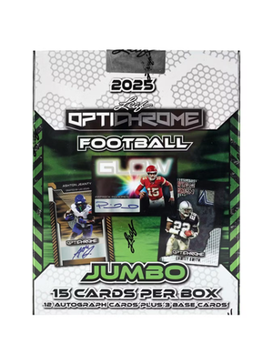 The 2025 Leaf Optichrome Football Jumbo Box offers the most comprehensive checklist of the season, showcasing a broad spectrum of talent from emerging Prep School Phenoms to established Hall of Fame Legends. This set is designed for serious collectors seeking depth and variety, featuring high-quality cards that capture the future stars and celebrated icons of football in one exceptional collection.
